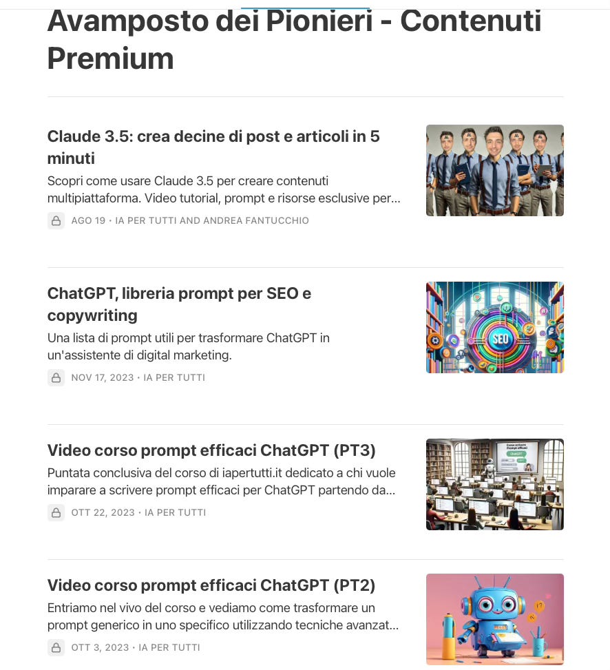 Siete già oltre 20 coraggiosi e coraggiose che avete deciso di darci fiducia con un abbonamento premium, sbloccando un forziere pieno di corsi, prompt, approfondimenti e altro materiale esclusivo.