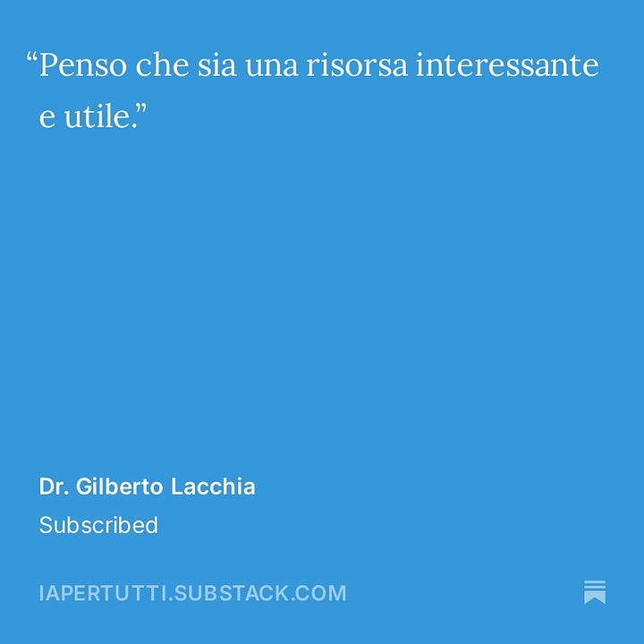 Questa newsletter ha superato i 700 iscritti: Sto preparando un regalo per ringraziarvi: a 1000 iscritti ci sarà una sorpresa. E presto lancerò newsletter tematiche basate sui vostri suggerimenti.